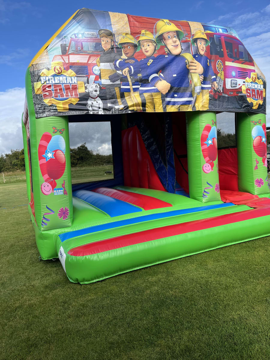 Experience Thrills with Our 17x17 ft Fire Man Sam Combi Bouncy Castle with 7ft Slide! 🎉